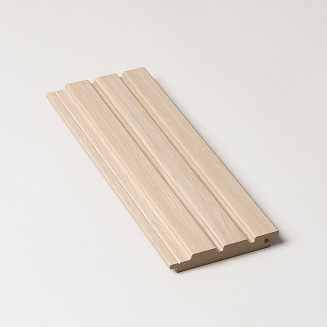 Groove 30’s flat and subtle panelling is smaller than vertical joint panelling for a refined aesthetic. It’s an excellent choice for sculptural tongue and groove panel designs, achieving a 100mm curve radius. Manufactured in Australia using PEFC™ moisture-resistant fibreboard (MR MDF) and bonded with NAVURBAN™ non-PVC Olefin decorative surface film.